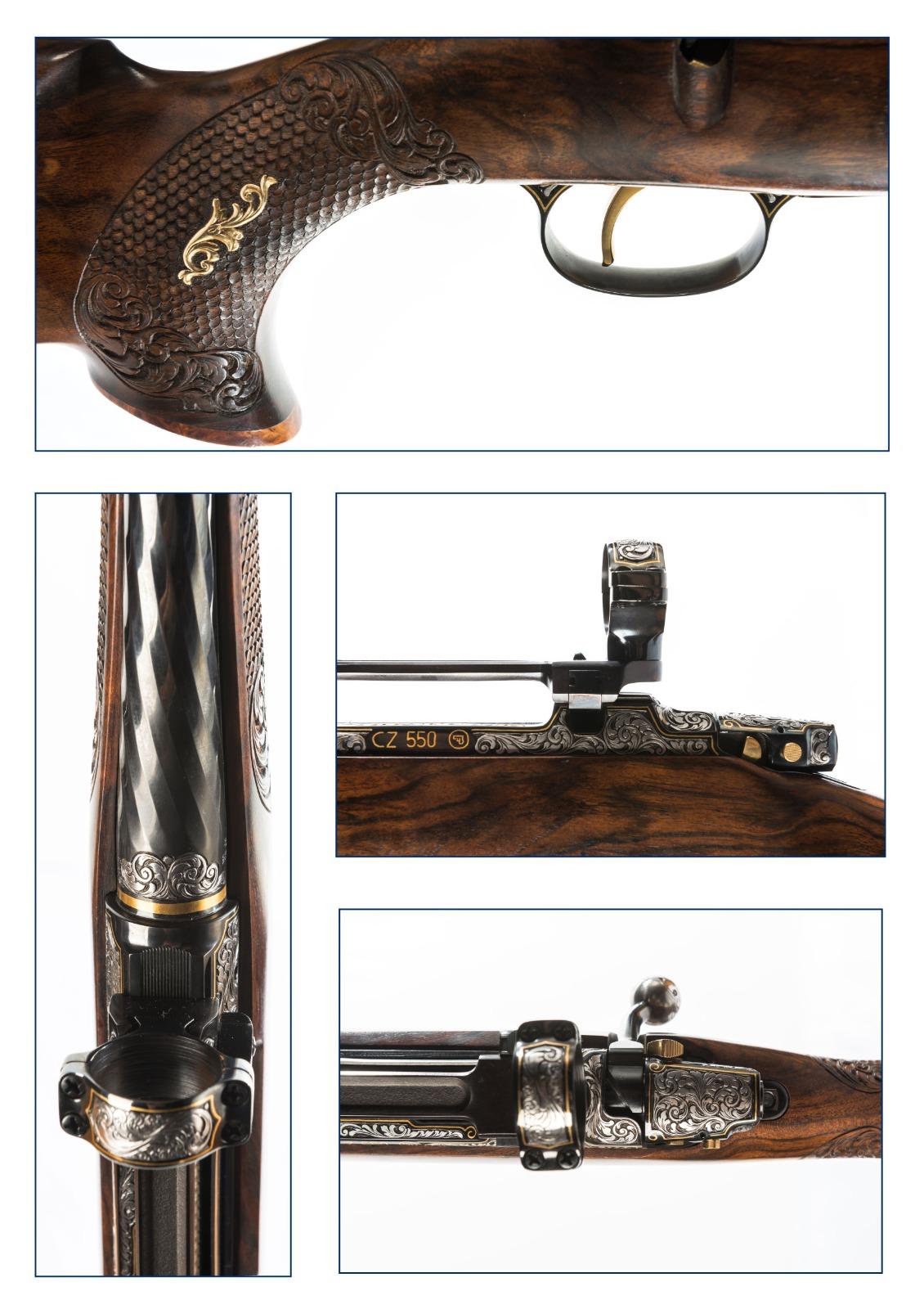 Винтовка CZ 550 гравированная, кал. 30-06 в комплекте: кофр кожаный, чехол, нож финский