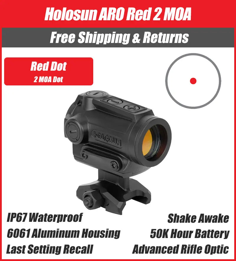 Современный коллиматорный прицел закрытого типа Holosun ARO-RD2 с инновационным 22-миллиметровым дизайном корпуса для профессиональной стрельбы.