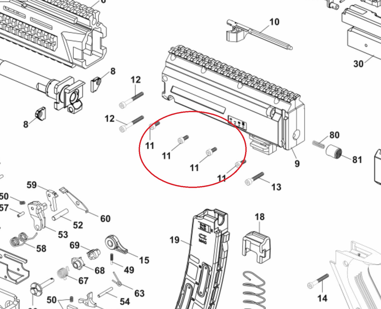 Винт (короткий) ресивера на CZ Scorpion Evo3