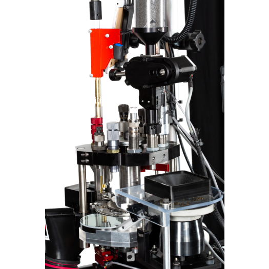 Основные технические характеристики: 10-позиционная инструментальная головка, цифровой дозатор пороха (±0,1 грана), 14-дюймовый податчик гильз (до 5800 гильз/час), сталь и алюминий, обработанные на станках с ЧПУ, цифровая муфта, защита от заклинивания TorqueSense™, модульная конфигурация